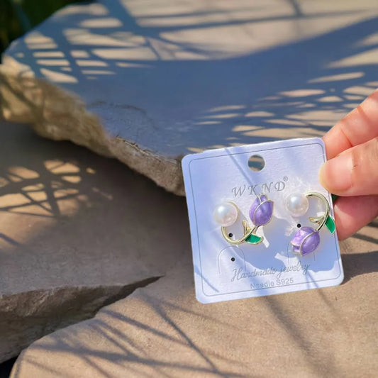 Silver Needle Korea Dongdaemun Pearl Leaf Tassel Earrings