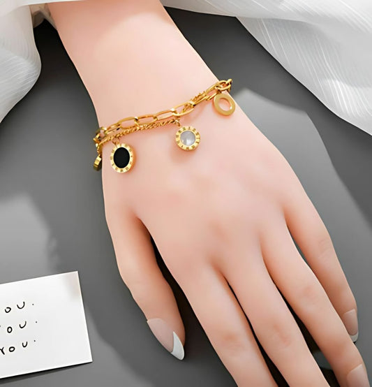 Dual Layer Printed L V Charm Bracelet | 18K Gold Plated | Anti-Tarnish