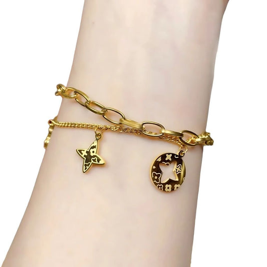 Butterfly Charm Dual Layer Chain Bracelet | 18K Gold Plated | Anti-Tarnish