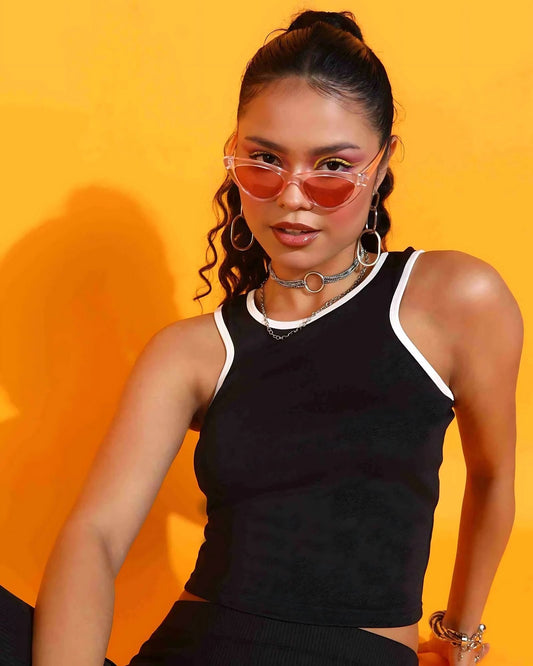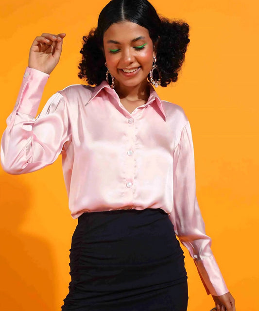Light Pink Satin Shirt & Black Hosiery Skirt