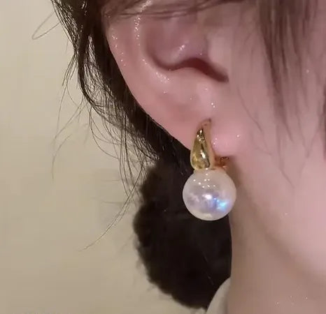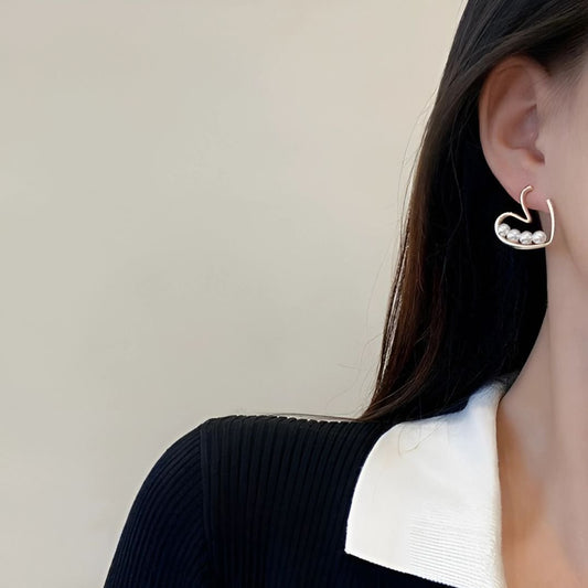 Korean Western Stylish Golden Heart Pearl Stud Earring