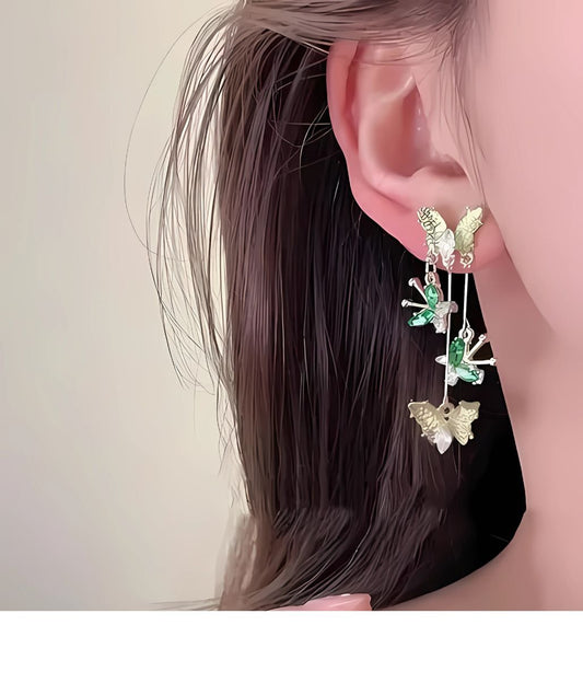 Stylish Green Rhinestone Butterfly Drop Earrings
